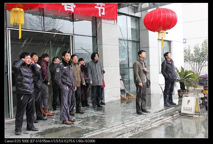 瑞雪兆丰年,漫天纷飞的雪花预示着新的一年顺顺利利,大家陆陆续续的返回单位。八点三十分,公司领导吴学敏等点燃了新年烟花爆竹,火红的爆竹预示这新的一年红红火火,绚丽的烟花象征的新的一年蒸蒸日上。新的一年就在这喜庆祥和的气氛中开始了。